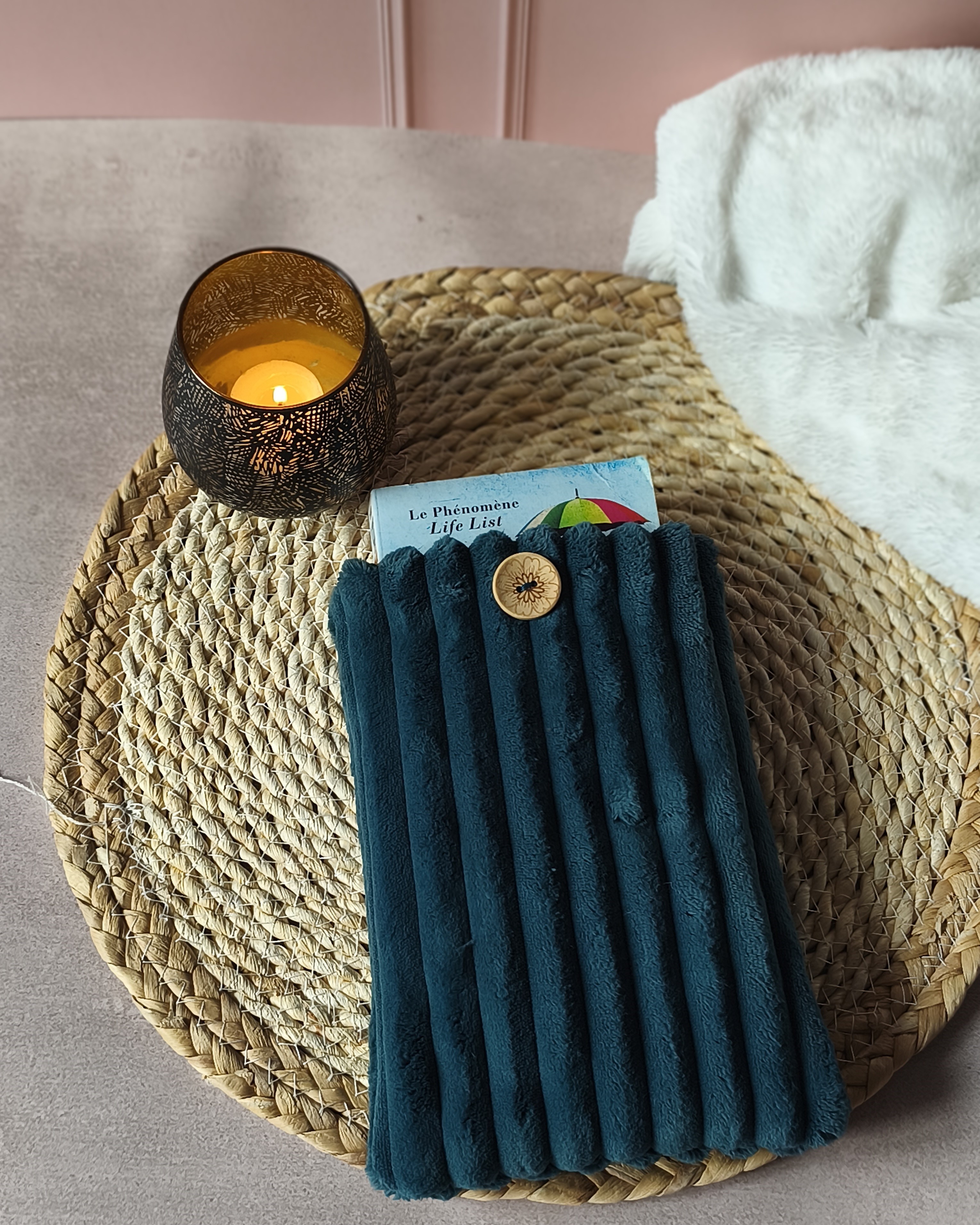 Un accessoire textile élégant, alliant douceur et praticité et pensé pour les amoureux de lecture en mouvement.