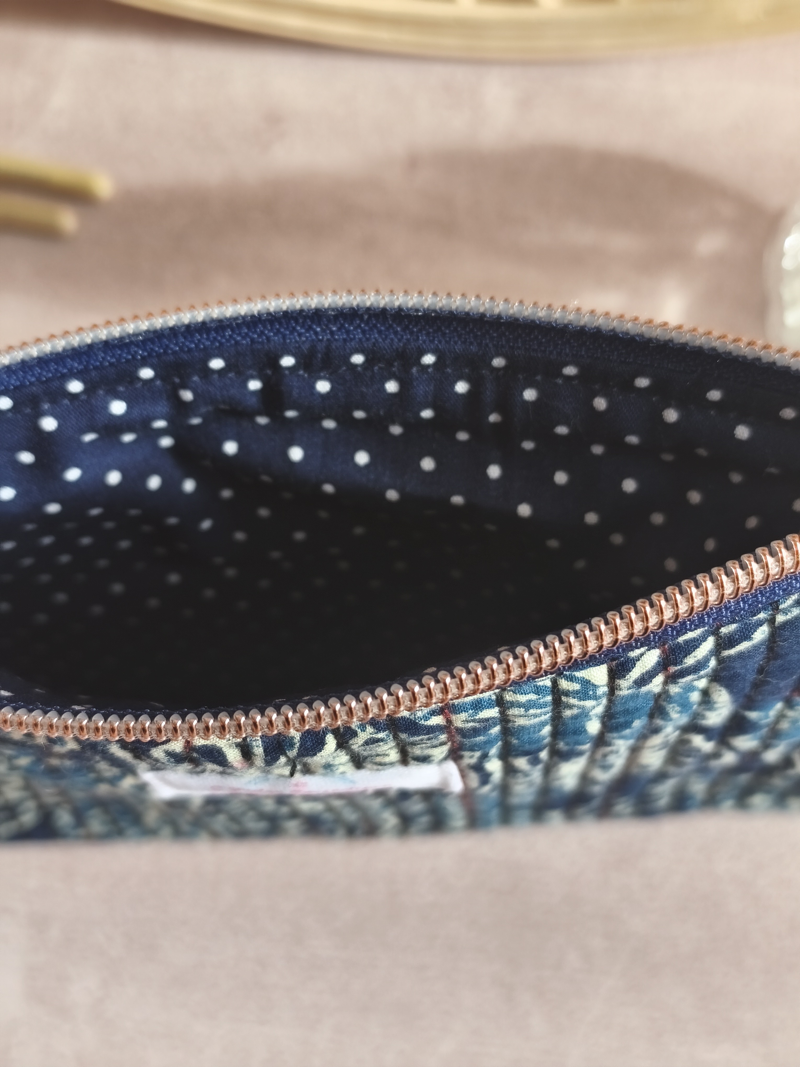 Découvrez cette pochette plate matelassée, idéale comme trousse à maquillage ou pochette de rangement. Confectionnée à la main, elle associe l’élégance d’un coton indien imprimé à une doublure en coton doux, pour un accessoire à la fois pratique, durable et raffiné.