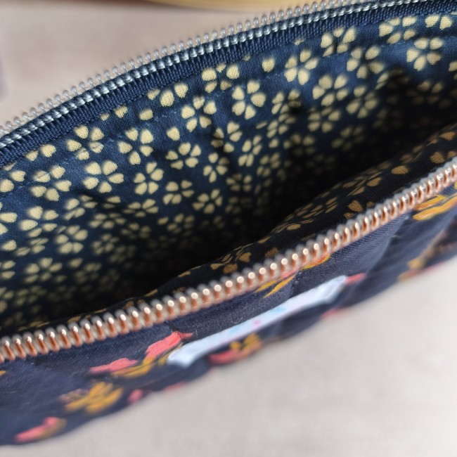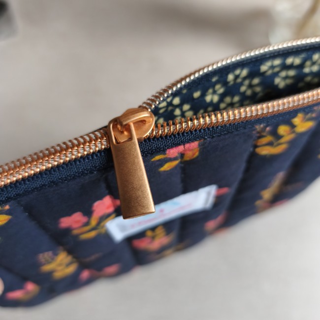 Pochette plate matelassée "Petite Fleur" Bleu marine
