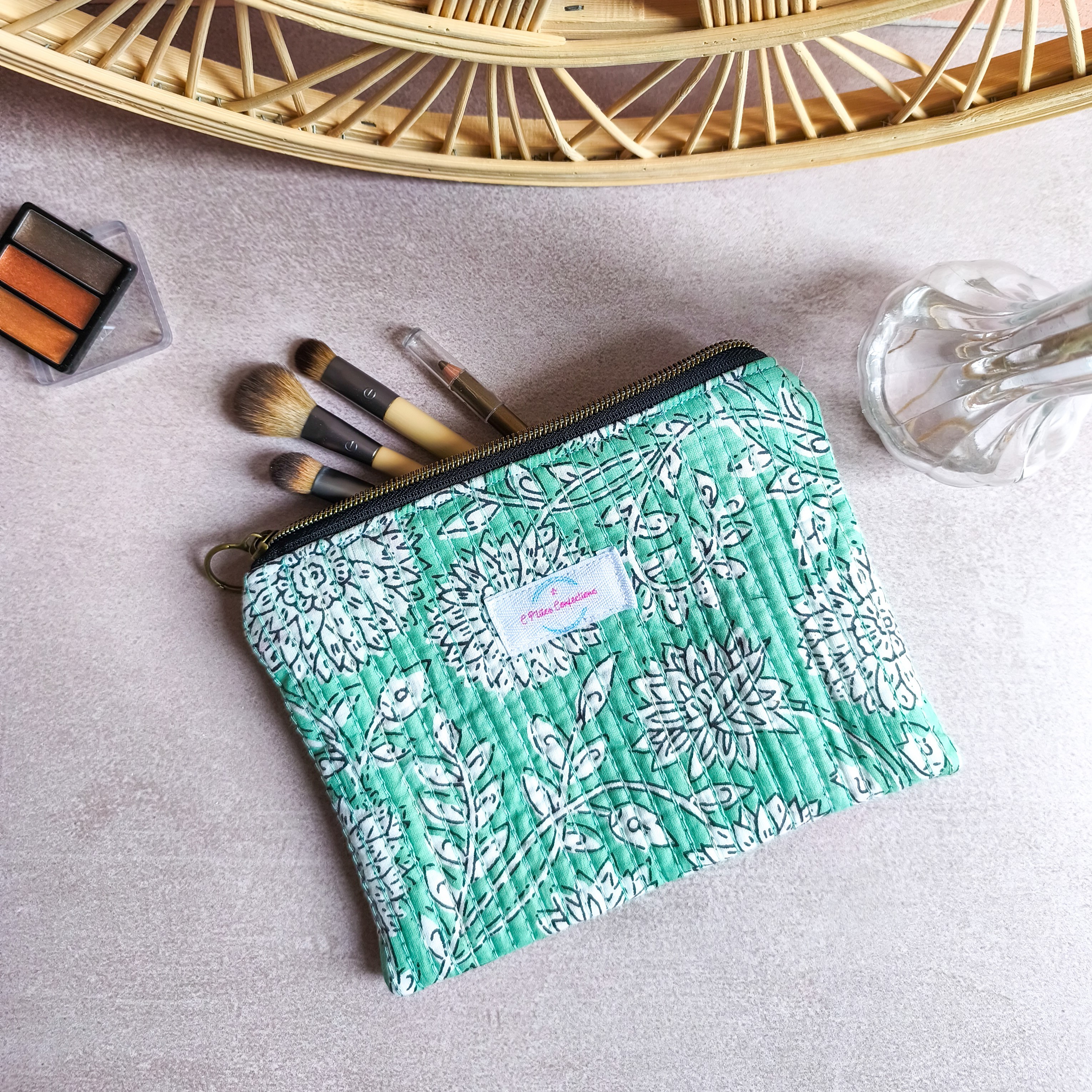 Découvrez cette pochette plate matelassée, idéale comme trousse à maquillage ou pochette de rangement. Confectionnée à la main, elle associe l’élégance d’un coton indien imprimé à une doublure en coton doux, pour un accessoire à la fois pratique, durable et raffiné.