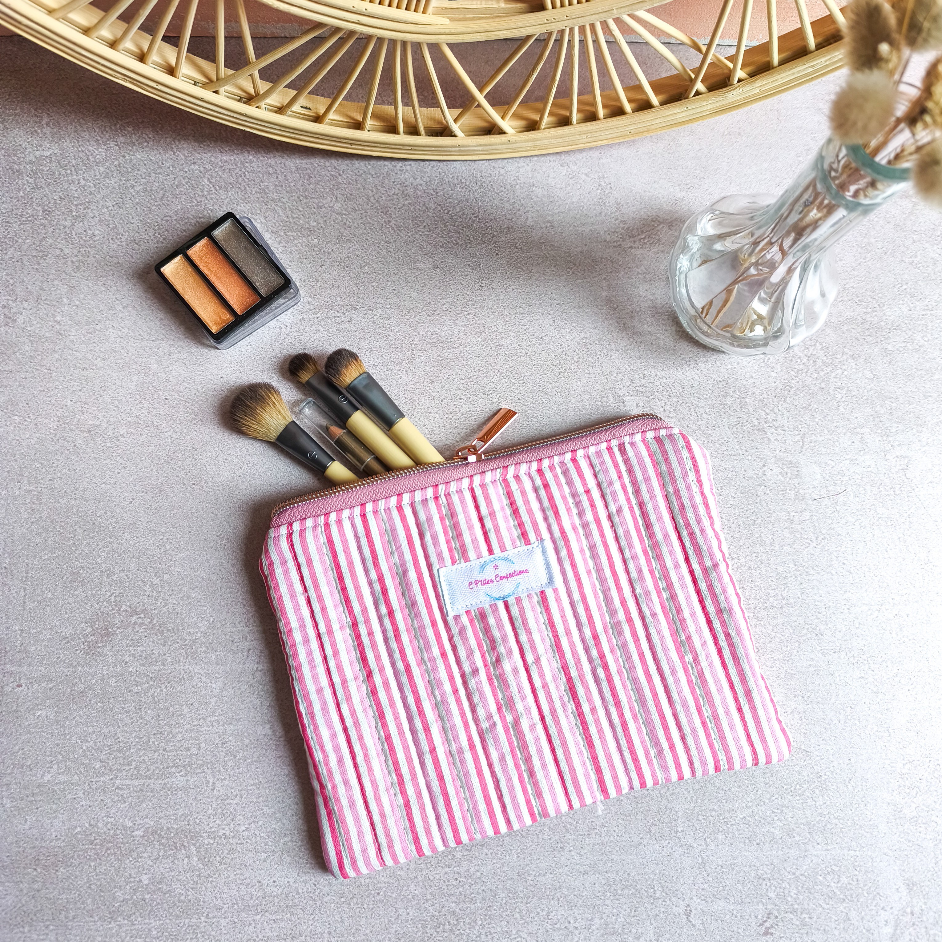 Découvrez cette pochette plate matelassée, idéale comme trousse à maquillage ou pochette de rangement. Confectionnée à la main, elle associe l’élégance du coton imprimé à une doublure en coton doux, pour un accessoire à la fois pratique, durable et raffiné.